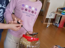 先日 食育にて、昨年冷凍していた梅を「梅プルーン」にして1ヶ月半。手に身体に優しい大豆消毒スプレーをして取り出しをしました。