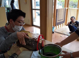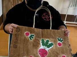 ふくしまの米袋を使用した“ろうびきバック”作り!
