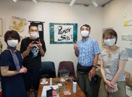 故メンバーさん(高齢施設にて永眠)の笑顔写真見たリーダーメンバーさん、「一閑張り教えて貰った」から始まり、「作品展示販売したい」へ、和紙会館見学もして、作品展に今年もお声かけ頂いて、写真撮りにお世話人遠藤さん来所で今日案内はがきのライン来ました。