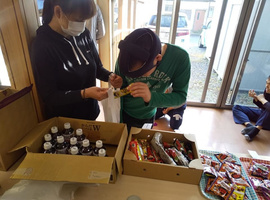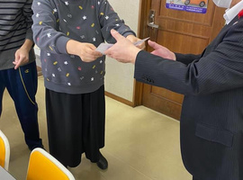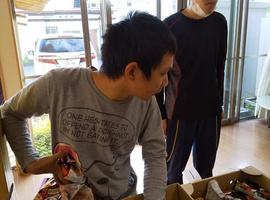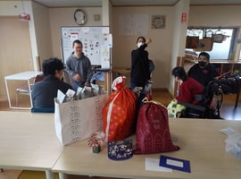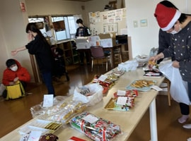 午後は、ご近所さん御家族からのお菓子、西光寺さんからのジュース、浅木整形外科さんからのお茶などプレゼント頂いたものを袋詰め。皆さん朝からニコニコでしたが、待ちに待ったと、積極的に取りに行く方も! 目的があると人は動く❗