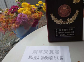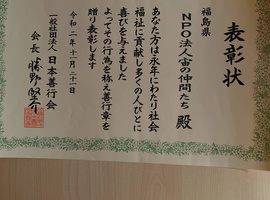 一般社団法人日本善行会様から、11月28日「宙(そら)の仲間たち」 も表彰して頂きました。所要で退座させて頂きましたが、長年勤めてくれたスタッフが授与させて頂きました。