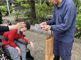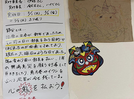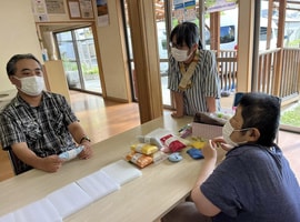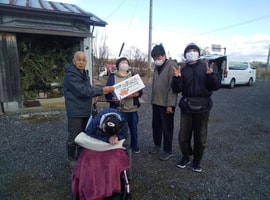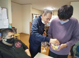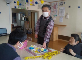 ご近所さんから、「3月11日の10年前 震災でそらさんに助けて頂いたの思い出したの」とお菓子を届けて頂きました。ご主人がご病気で、歩くのがスムーズでないため、戻った送迎車に車椅子で乗って頂き、余震の為待機していました。その後、旅立たれた時もご自宅に焼香させて頂いて、皆で自宅から移送されるのを手をあわせお見送りしました。12月で退職した元スタッフがホワイトデー近いからとお菓子を届けて下さいました。地域の方が宙(そら)の仲間たち・おーぷんさろん宇宙(そら)のメンバー(利用者)さんを大切に思って頂き感謝に満たされました。