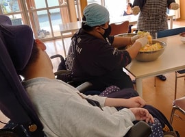 Aromaheart Yuの竹俣先生がボランティアで来て下さり、スタッフへのアドバイスやケアもして頂きました。ハンドケアの後には、アロマの香りの中、ハーブティでゆっくりと茶話会タイムを過ごして頂きました。