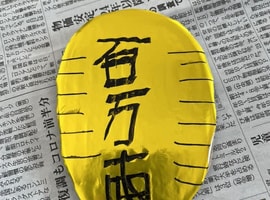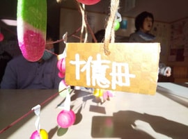 14日は、小正月で団子さし、年始に一万円など書くメンバーさんが「十億円」の文字!