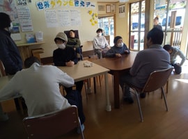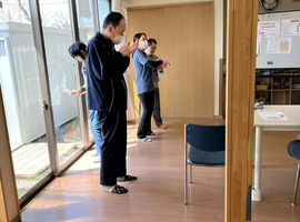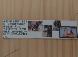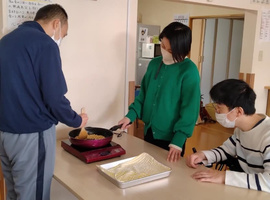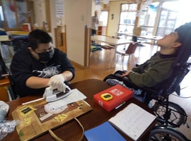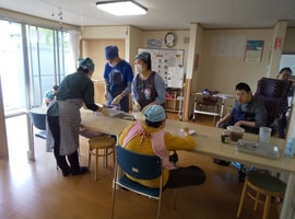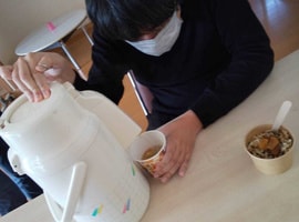3月11日 東日本大震災を思い出し話した後、防災の日として移動スロープの使い方を実施。避難生活体験で、備蓄のカップ味噌汁の作り方を一人一人体験。ミキプルーンご飯と共に昼食。午後は、昨年の3月11日のカテリーナさんの癒しのコンサートのDVDを鑑賞しました。