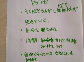 お世話になった西田町のほんだ屋さんが3月で店仕舞いされ、最後の買い物と感謝のメッセージをお渡しして来ました。4月1日チルの日にて、個人の目標の発表とおーぷんさろん宇宙(そら)の目標を出して投票できまりました。自由の意味を話し合いながら、個人の目標も楽しみに過ごせる新年度ありますように。。