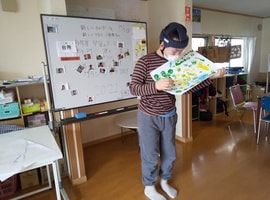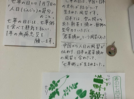 食育で中秋の名月にて、すいとん作りと十五夜について調べたメンバーさんの発表♪