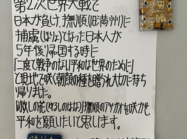 根本先生からインターシップの学生さんに励ましの言葉を頂き、朝顔のように花咲く日を楽しみにしながら平和を願います✨