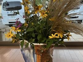 すすきや花を取りに行き、庭で飾りました🌼(*^^*)