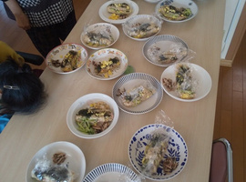晴まっきは、そらで料理を重ねた成果を、夕方にご両親に料理の様子見ていただき、夕飯のおかずにお持ち帰り頂きました。
