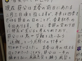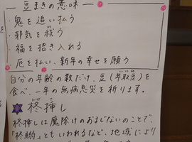 神棚に豆を・入り口にイワシを・そして厄年の方中心に豆まきをしました。